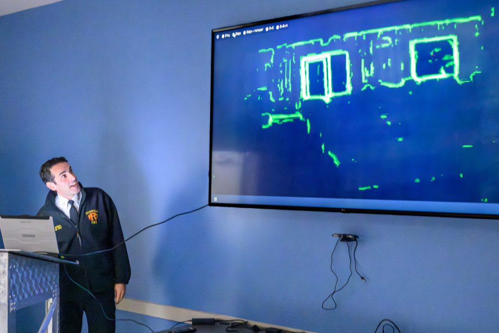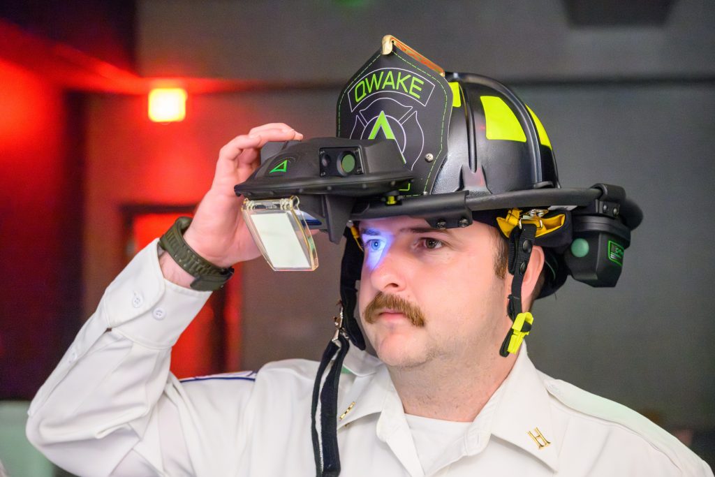 As a bonus, at the end of the night, we saw a demo of the cutting-edge Qwake technology they’re testing — a next-gen helmet system that combines AI, augmented reality, and thermal imaging to help firefighters see through smoke and navigate zero-visibility environments safely. It overlays thermal and edge-detection views directly in the firefighter’s line of sight, helps them locate exits and victims faster, and can stream real-time information back to the incident commander—even to headquarters—improving situational awareness for everyone.
