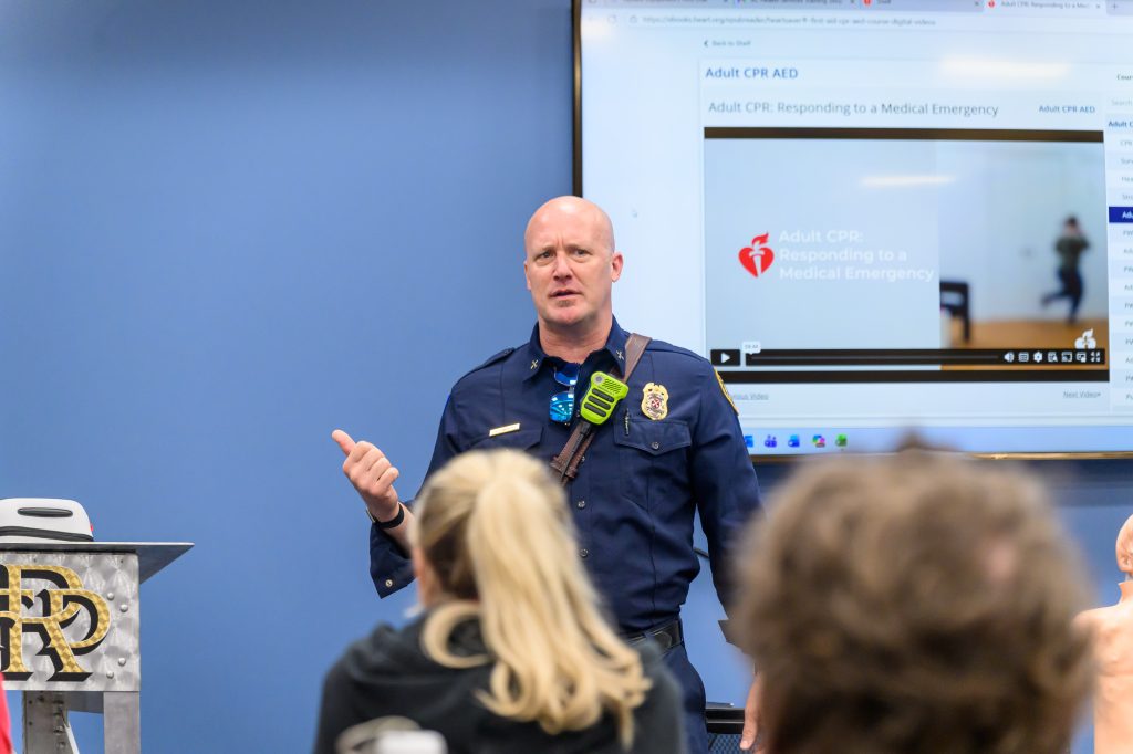 One evening focused on lifesaving basics. Captain Bryan Thomas, Battalion Chief Danny Dwyer, and Battalion Chief & Fire Marshal Chris Archer walked us through CPR, AED use, and airway-clearance techniques. It was practical, hands-on learning that reminded me how important it is for everyday citizens to know what to do before first responders arrive.