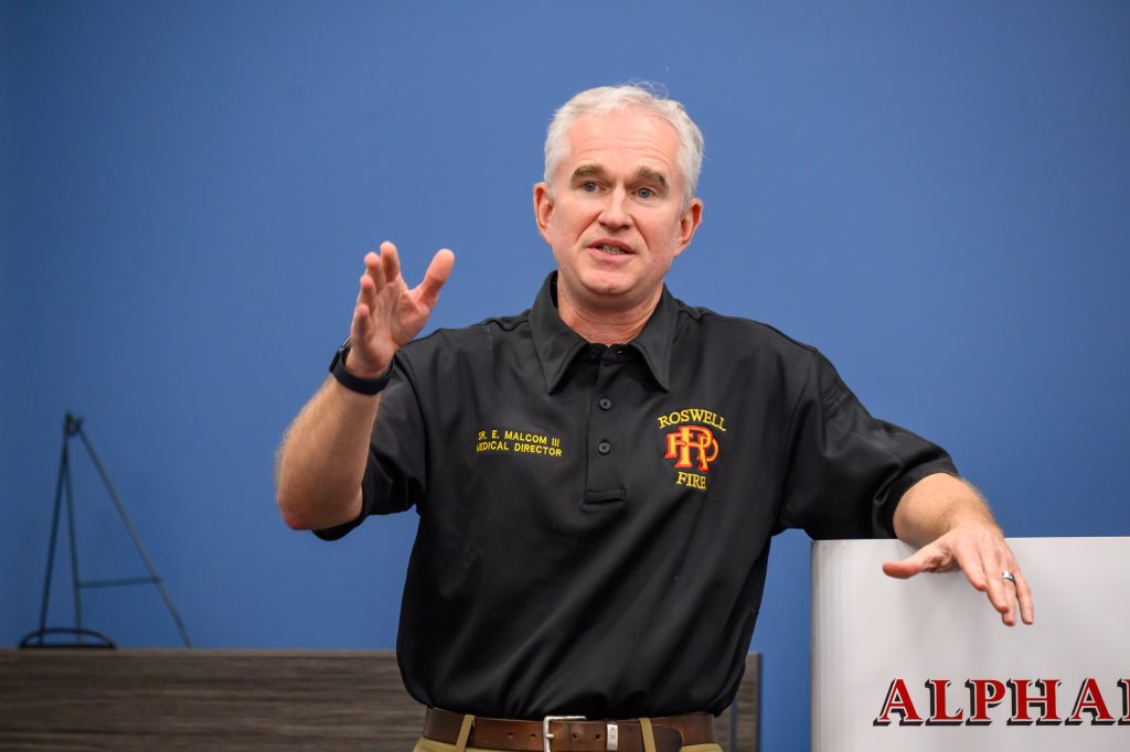 Battalion Chief DeWayne Campbell led the evening with help from the team at Station 22, including Captain Anthony Witchousky, Firefighter Kyle Phillips, Roswell City Nurse Virginia Hames, Captain Bryan Thomas, and others. We also heard from the department’s Medical Director, Dr. E. Malcolm III, who explained the critical role a medical director plays in EMS systems.