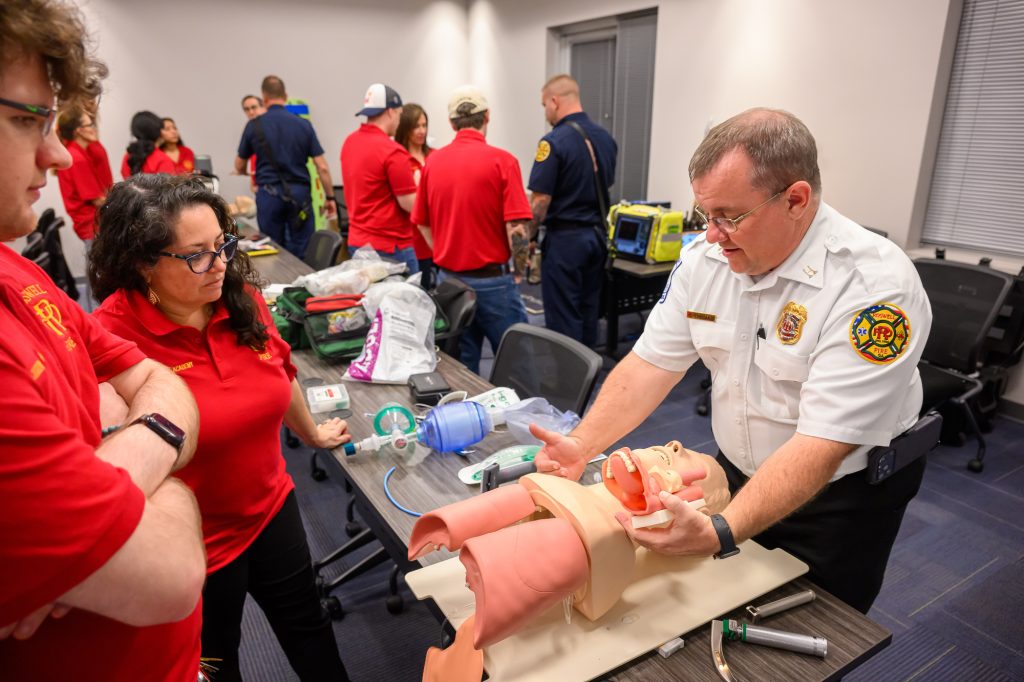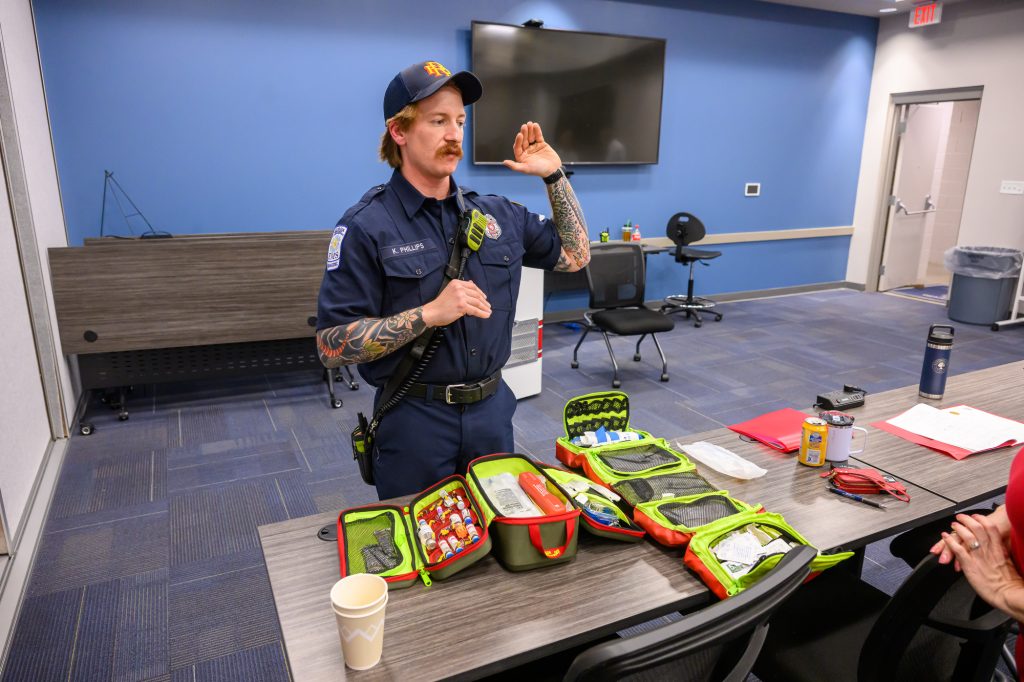 They walked us through the different levels of EMT training and the paramedic level, showed us the tools and medications they use in the field, and demonstrated how they are used during real emergencies. Then we got to try some of it ourselves.