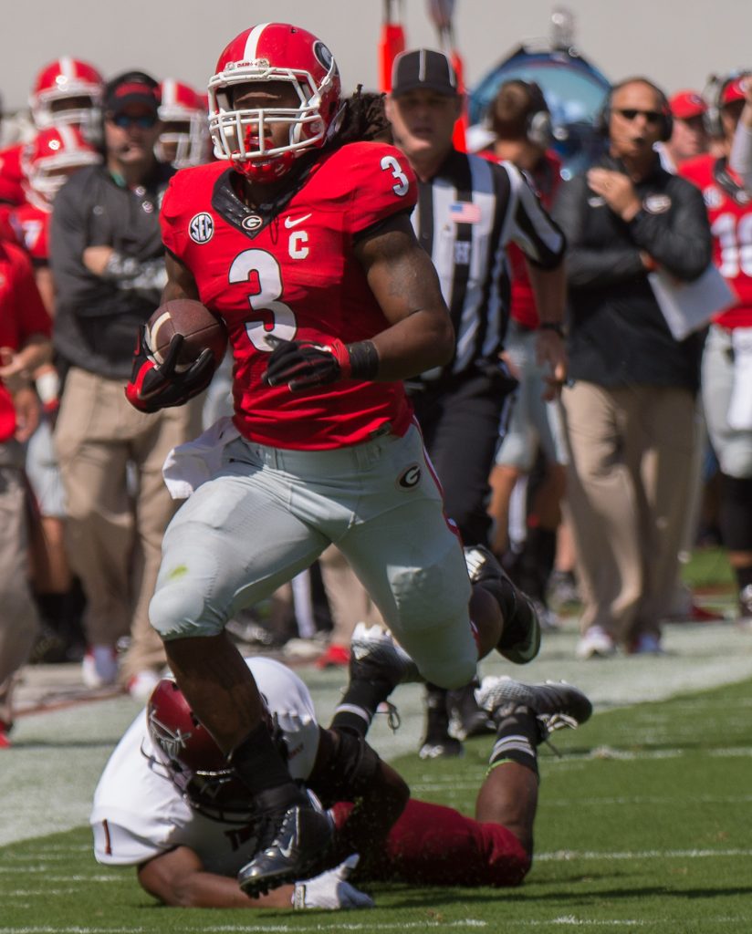 Now, at this point in the season, the top running back in the country is UGA #3, Todd Gurley. I tried to get a photo of him with the coach. The best I did that day was this shot, but the ƒ/5.6 was too shallow to show Mark clearly in the background.