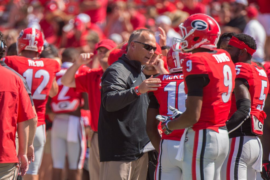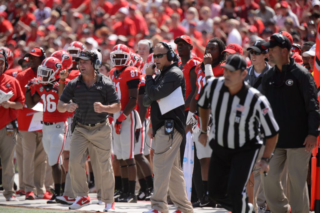 Mark Richt is on the far right with a headset. Well, I just missed it. A few days later, the NCAA suspension came out, so he was definitely out of the magazine piece. It would have distracted from the storyline.